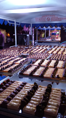 L’ensemble des wagons avaient été transformés en chariot de pâtisserie, des milliers de pièces sucrées s’alignaient sur d’immenses plaques miroir. Les pâtissiers de toute la région de Béziers s’étaient mobilisés pour présenter cette oeuvre d’art éphémère.