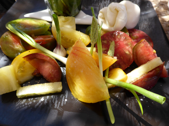 Tomates anciennes, jambon de parme, Burrata, couteaux, télines, poissons grillés, sardines, viandes grillées… cuisine du produit, sans faute, réalisée par le chef Nicolas Ponthier, un ex des équipes Pourcel à La Compagnie des Comptoirs.