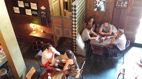 Dans la petite rue qui donne sur l’arrière, à l’abri des regards, le coffee shop a rapidement trouvé sa place et sa clientèle, un peu de buzz sur internet, et déjà les touristes connectés s’y pressent. C’est tout petit, et c’est continuellement plein. Il y a les touristes bien sûr, les expatriées qui bossent sur leur MacBook, les amoureux discrets, les clients branchés.
