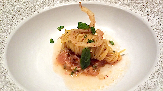 La succession de plats offre une belle diversité du savoir-faire du chef, c’est goûteux, original et totalement maîtrisé. Même si la mise en oeuvre semble simple, les jeux de saveurs, de textures et de parfums étonnent facilement et réjouissent les papilles.