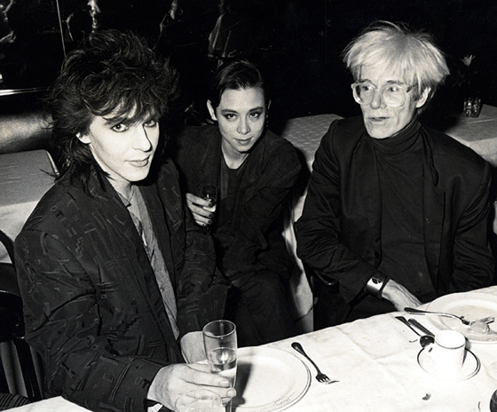 Andy Warhol fête ses 58 ans avec Nick Rhodes (Duran Duran) et Tina Chow chez Mr Chow (New York, 1985)