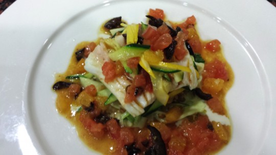 Filet de poulet aux cèpes – OU – Filet de dorade sébaste aux légumes du soleil.