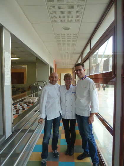 En effet le chef Laurent Pourcel du Jardin des Sens à Montpellier et le chef Gérard Cabiron du Traiteur Cabiron à Montpellier s’étaient unis sous l’égide de Nathalie Delemotte responsable du centre de production culinaire de Fabrègue pour réaliser un déjeuner » gastronomique » version cantine qui a été servi en tout et pour tout à plus de 5000 enfants.