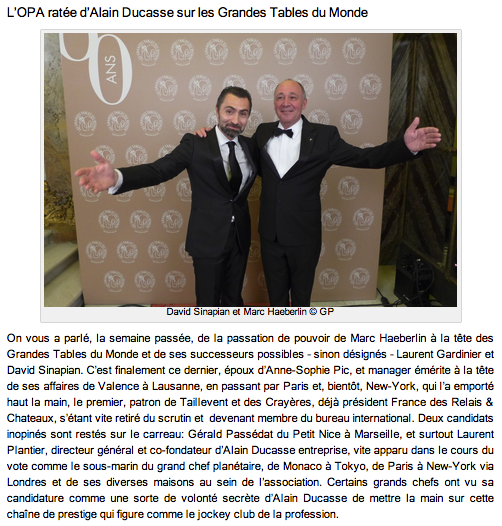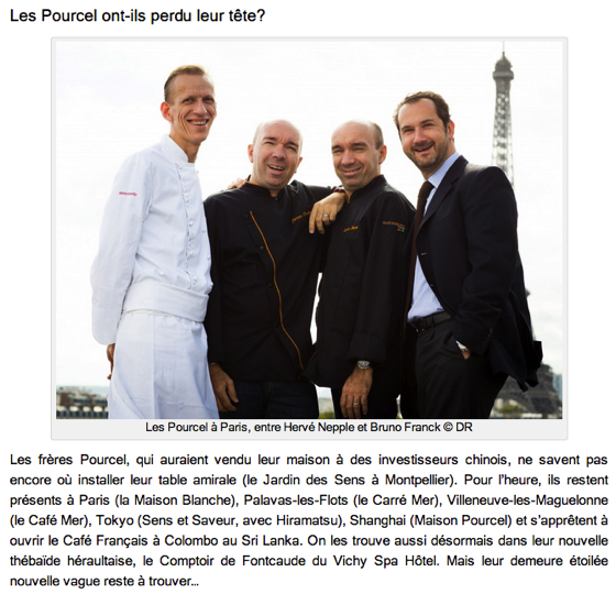 Les dernières infos en reprise du Blog » Les Pieds Dans Le plat » de Gilles Pudlowski nous amènent dans sa rubrique du lundi » les chuchotis du lundi « … toujours intéressant de retrouver les cancans du début de la semaine version casseroles… Les chefs passent en ce moment à la moulinette !