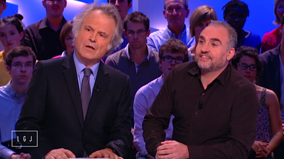 A – Grand Journal de Canal – ce jeudi soir c’était FOG ( Franck Olivier Giesbert ) et Yves-Marie Le Bourdonnec qui tenait le débat, un végétarien tolérant face à un artiste boucher.
