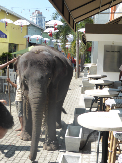 La rue commerçante de » Park Street » voyait pour la première fois un éléphant, les premiers touristes dès le matin étaient ravis de découvrir le début des festivités.