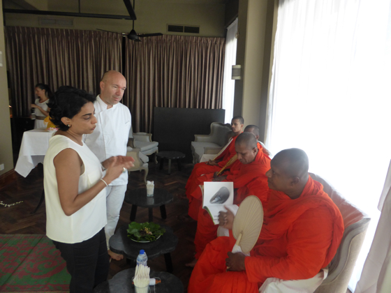 Le chef Jean Philippot fait déguster quelques unes de ses préparations aux Moines, qui sont très surpris par la cuisine française.