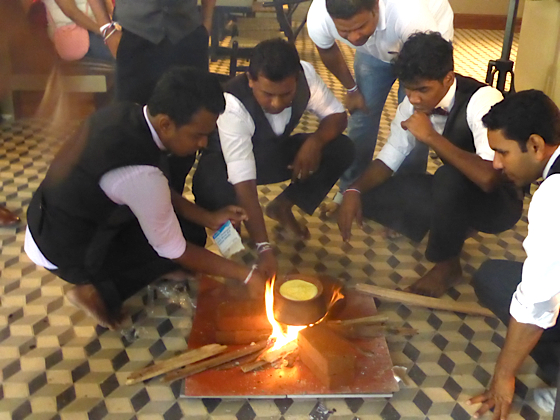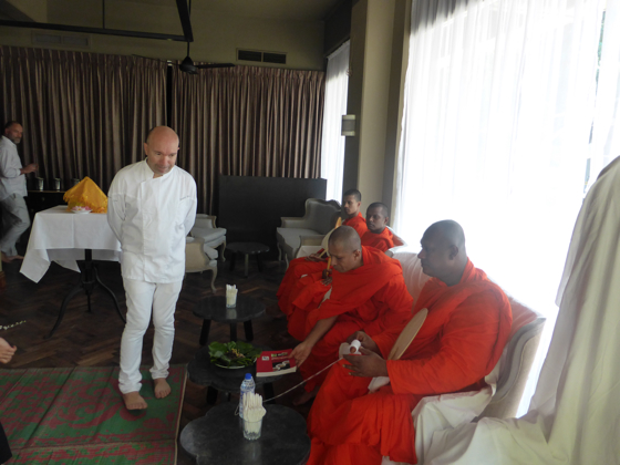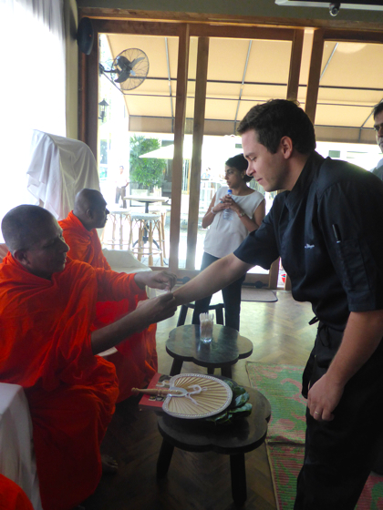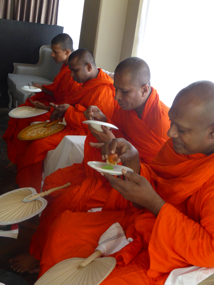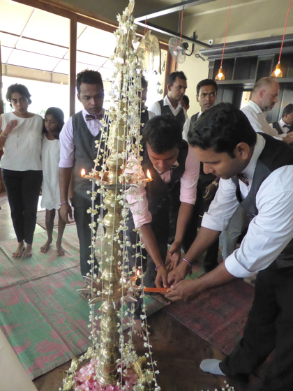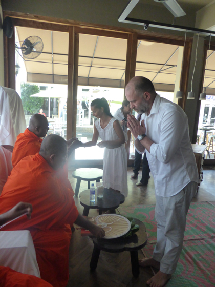Journée consacrée aux cérémonies dans la pure tradition bouddhiste, c’est très important lorsqu’un commerce ouvre au Sri Lanka que certains rites soient respectés. Ici la population est très attachée et respectueux de la tradition.