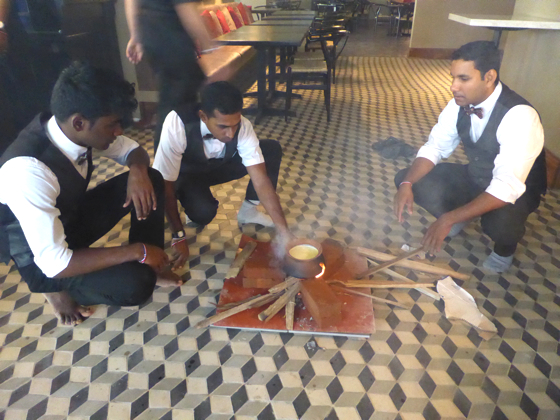 Pendant ce temps la préparation du feu par les équipes de salle qui aura lieu dans le restaurant avec le pot contenant du lait, du thé et du miel. Le restaurant ne pourra ouvrir que le lendemain de la cérémonie, le jour même le restaurant ne pouvant pas contenir d’alcool.