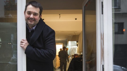 Déjà à la tête d’un restaurant deux étoiles, d’une brasserie et de la pâtisserie Thoumieux de la rue Saint-Dominique, à Paris, le chef de 44 ans est fier d’ouvrir enfin avec sa femme un lieu «rien qu’à eux». Une nouvelle étape dans une riche carrière: une formation au Crillon auprès de Christian Constant, douze ans avec Alain Ducasse au Louis XV, au Relais du Parc et au Plaza Athénée, où il obtient trois étoiles, avant un retour au Crillon qu’il quittera avec deux macarons en poche. À deux semaines de l’ouverture, prévue le 11 décembre au soir, Jean-François Piège nous présente en exclusivité Clover à Saint-Germain-des-Prés. Le cuisinier n’hésite pas à salir ses Louboutin cloutés et son caban bleu foncé pour nous montrer le chantier, jusqu’au sous-sol qui abritera une cave à porto, un séchoir pour les salaisons et une grande table secrète destinée aux amis du couple. Il nous confie avec enthousiasme les détails de cette nouvelle aventure.