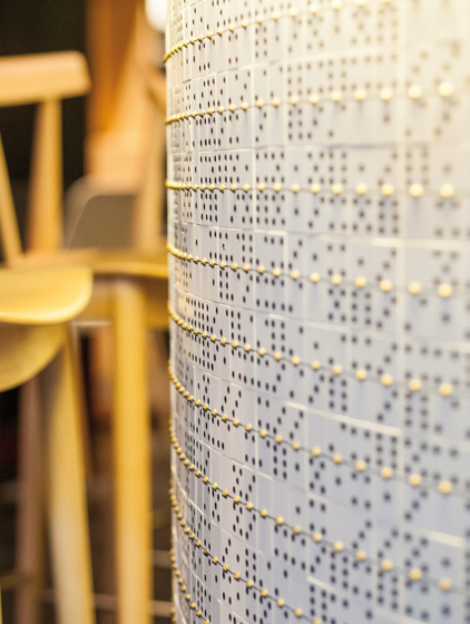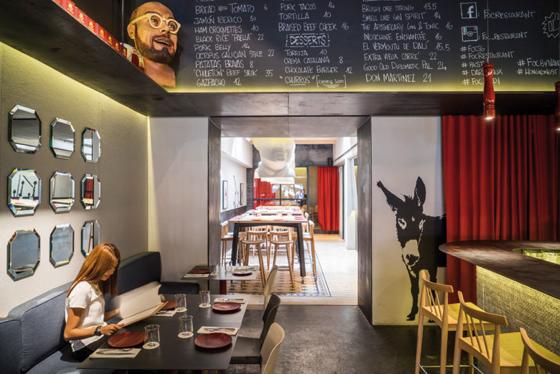L’intérieur du restaurant est un hommage ludique à la culture catalane, reflétant l’esprit du restaurant de concevoir l’alimentation de façon ludique et amusante.