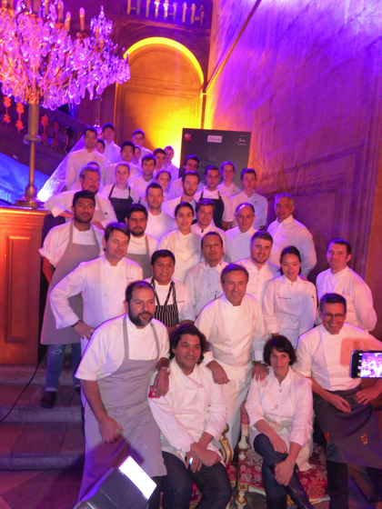 Georges Blanc, Thomas Keller, Éric Briffard, les frères Pourcel, Gilles Goujou, Gant Achatz, Michel Guérard, Marc Veyrat, Emmanuel Renaut, Ciryl Lignac, Pierre et Michel Troisgros, Frédéric Anton, Gérald Passédat, André Chiang, Christian Lesquer, Michel Trama, Michel Roth, Hiroyuki Hiramatsu, Jean-François Piège, Mauro Calogreco, Marc Haeberlin, Nadia Santini,Yannick Alléno, Nicolas Sale, Serge Vierat, … plus de 30 nationalités étaient représentées ce soir.
