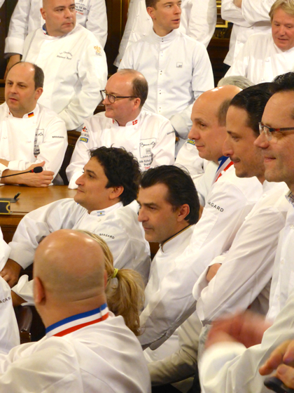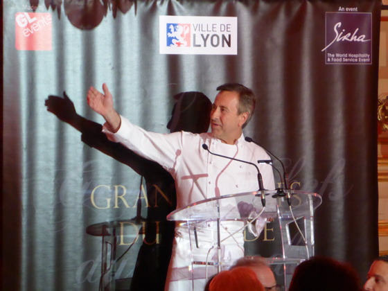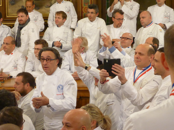 Dans tout les esprits bien sûr le chef Paul Bocuse, trop fatigué pour être présent, le chef fête cette année les 50 ans de 3 étoiles de son établissement à Collonges-Au-Mont-D’Or, autant dire que le monde entier de la cuisine était là pour porter haut tout le respect que la profession tout entière dois au grand chef.