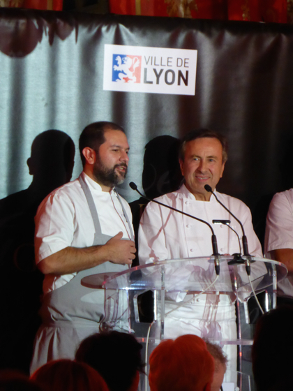 Les Lyonnais n’étaient pas oubliés du programme puisque Florent Boivin ( institut Paul Bocuse ), Christian Têtedoie ( Têtedoie Lyon ) , Davy Tissot ( La Villa Florentine ) étaient eux aussi du programme pour l’apéritif.