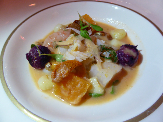 Le dîner commença par un impressionnant Ceviche signé par le chef péruvien Gaston Acurio,le voyage commença dans la subtilité du piment, de la fraîcheur des crustacés et coquillages.
