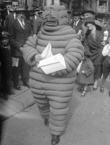 Une de nos internaute a déniché un article assez décalé et qui vous amène loin dans l’histoire de la compagnie de pneus Michelin, à l’origine même du personnage emblématique de la marque mister – Bibendum – !