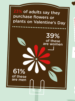 23 % des personnes qui fêtent la Saint-Valentin optent pour offrir des fleurs.