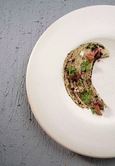 Concentrer les produits au centre de l’assiette à partir d’une purée ou d’un condiment étalé sur l’assiette, c’est un peu partout que cette technique se développe.