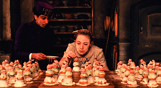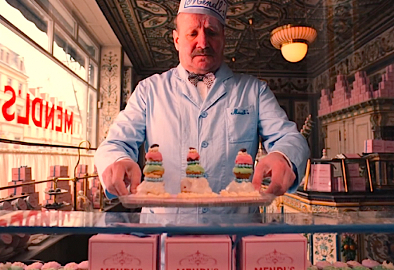 Le pitch : Zéro Mustafa fait de son mieux pour aider son patron. Grâce à sa fiancée, Agatha, il cache des burins et marteaux miniatures dans les pâtisseries : ils serviront à creuser un tunnel pour s’évader. Les gardiens qui contrôlent les colis des prisonniers en éventrant les victuailles renoncent en effet à leur vigilance, face aux merveilleuses, aux délicates pâtisseries Mendl’s, fournisseur attitré du Grand Budapest.