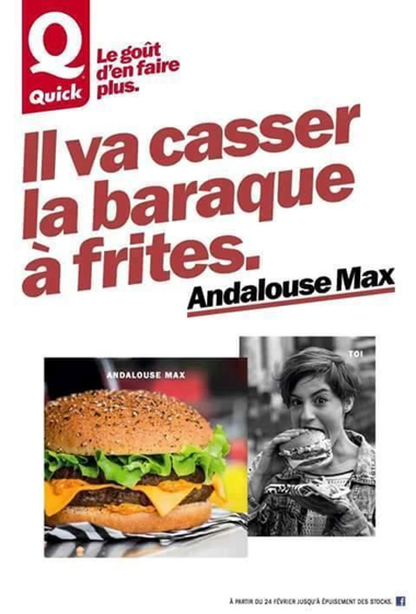 Le dernier slogan de la chaîne de fast-food Quick ne plaît pas aux frituristes. Pour promouvoir ses hamburgers Chicken Samouraï Max et Andalouse Max, Quick déclare la guerre aux friteries !.