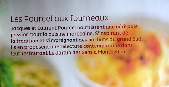 Le Goût du Maroc : cuisine de femme, cuisine de tradition, cuisine de goût, au Maroc l’essentiel, c’est les produits et le savoir faire. Le savoir faire il est familial, les produits ils sont à vos portes, olives de Meknès, légumes de l’Ourika, huîtres de Oualidia, citrons confits, huile d’argan, safran de l’Atlas…