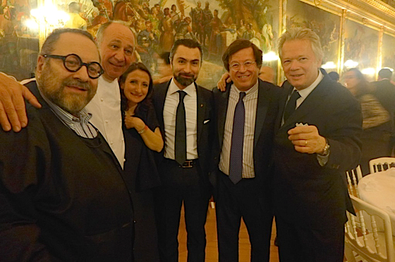 Le producteur Guy Job, les chefs Marc Haeberlin et Anne-Sophie Pic, le Président des grands Tables du Monde David Sinapian, Michel Bernardaud des Porcelaines éponymes, le journaliste Gilles Pudlowski. © GP