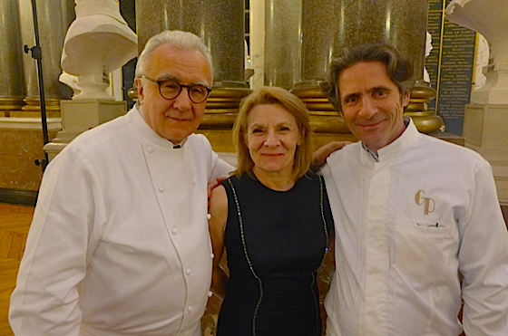 Le chef Alain Ducasse, la journaliste Catherine Pégard ( également présidente de l’établissement public du château ) , le chef Gérald Passédat. © GP