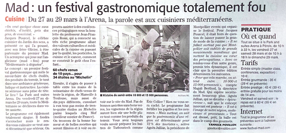 Le MAD à Montpellier présenté à la presse – 1 er Festival de Cuisine Méditerranéenne -