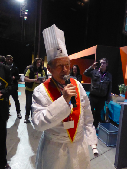 Dès le début de la matinée, les chefs étaient sur le site , ici Gérard Oudin responsable des » Disciples d’Escoffier « .