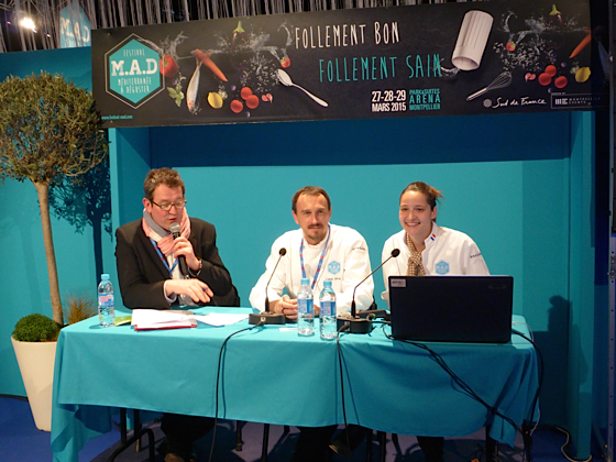 Le M.A.D c’était aussi des tables rondes, ci-dessus celle animée par Le Collège Culinaire de France, à la table une productrice d’huître ( Tabouriech à Marseillan ), le chef Fabien Lefebvre du restaurant Octopuss à Béziers, mais aussi un vigneron produisant des vins biologiques. Le Collège Culinaire de France a aussi réuni l’ensemble des ses membres lors d’une réunion de travail dans l’après-midi.
