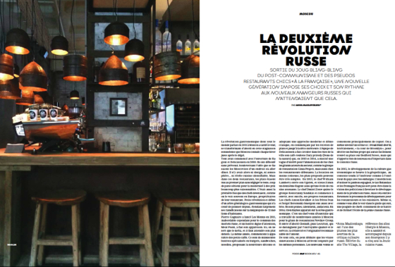 Omnivore échange avec avec Philippe Conticini, suit la progression de l’enfant du siècle Mathieu Rostaing-Tayard, va à Moscou où la révolution culinaire bat son plein, raconte le retour au Portugal de Leonardo Pereira, bouge sur le son des foodtrucks montréalais et se tonifie au gin d’ici et d’ailleurs.