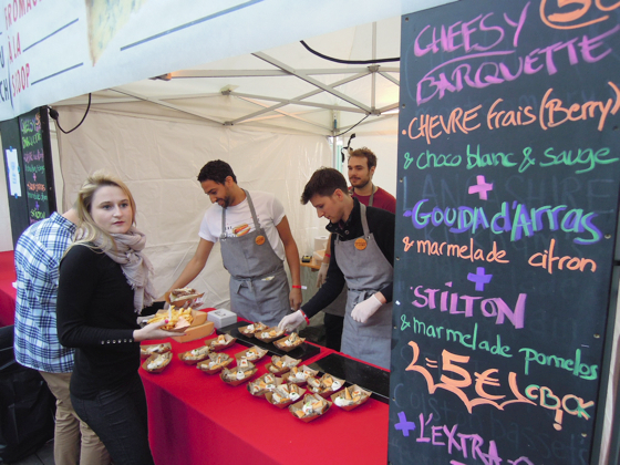 Fromage à la scoop’ propose de découvrir des fromages de qualité accompagnés de garnitures originales. Une équipe jeune, fédérée autour de Thomas, l’expert dans le domaine transmet sa passion pour les produits uniques de petits producteurs et livrés pour l’occasion le jour même. Ici, un chèvre frais du Berry sur un carré de chocolat blanc et un jus à la sauge, un gouda d’Arras avec une marmelade de citron et un excellent Stilton accompagné d’une marmelade de pomelos. L’équipe est actuellement à la recherche d’un emplacement pour ouvrir leur premier point de vente.