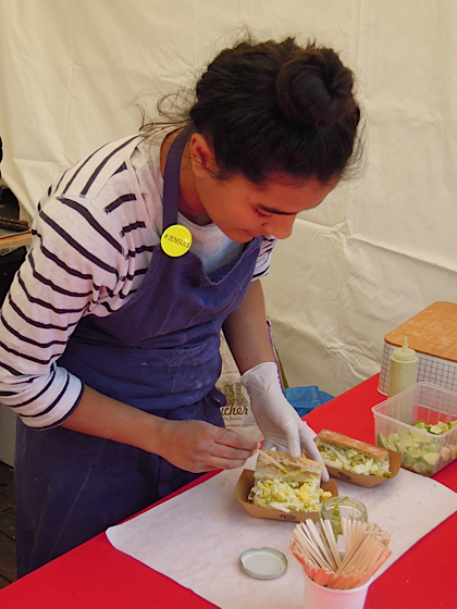 Pickled, la cantine créative avec le chef Amandine et la designer culinaire Myrtille venant tout juste d’ouvrir leur restaurant dans le 11ème arrondissement proposait un sandwich au poulet et curry vert. De toute évidence un lieu à découvrir prochainement.