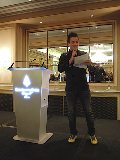 Nicolas de Masterchef s’est occupé de faire une brève présentation des partenaires et c’est par un tonnerre d’applaudissements que Gilles Pudlowski entre en scène. Gilles Pudlowski explique alors son émotion pour le guide crée en 1990 et se compare avec une touche d’ironie au dernier des » Mohicans « .