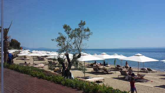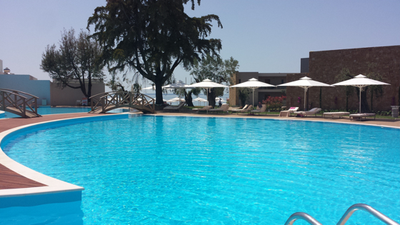 L’hôtel dispose d’un peu plus de 300 chambres, villas et appartements, il est situé en bords de mer à environ 40 minutes de l’aéroport de Thessalonique.