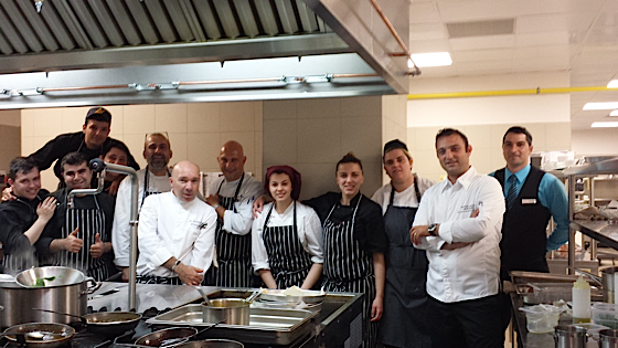 Ci-dessus le restaurant Provence de l’Hôtel Ikos Olivia et l’équipe des frères Pourcel et les chefs dont Thierry Rousset.