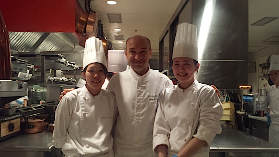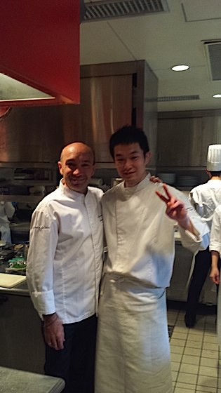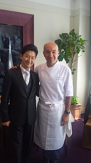 Le chef Laurent Pourcel et le chef japonais du restaurant Paul Bocuse, Shugo Fujihisa.
