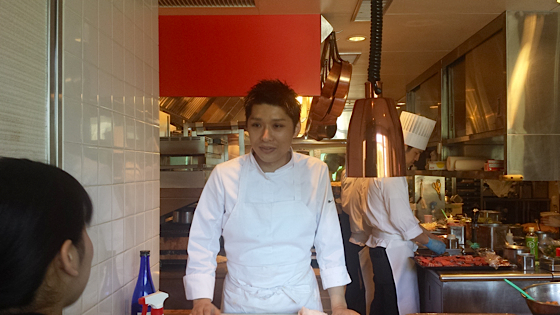 Le chef Kamoda Takeshi du restaurant « Sens & Saveurs » à Tokyo, dans les cuisines du restaurant Jardin Paul Bocuse.