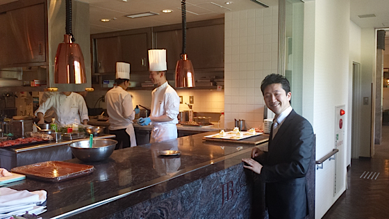 Je retrouve notre chef Kamoda au restaurant Sens & Saveurs, cette adresse à Tokyo anime le 35 éme étage du building Marubiru au coeur des quartiers d’affaires et de tourisme, puisque situé face au palais Impérial. Depuis 13 ans nous signons la carte de ce restaurant français propriété du groupe japonais Hiramatsu.