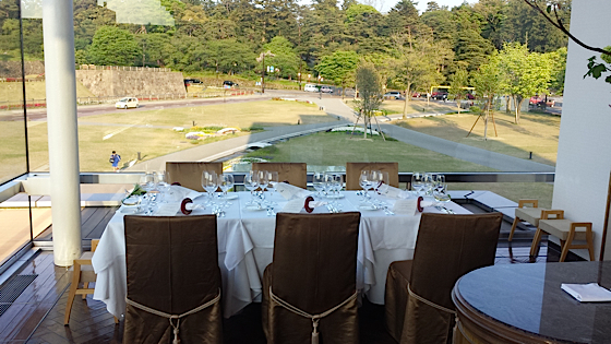 Direction ensuite le restaurant Jardin Paul Bocuse, il est situé dans un ancien bâtiment administratif donnant sur le Château de Kanazawa. Au premier étage se trouve le restaurant gastronomique et au rez-de-chaussée c’est la brasserie.