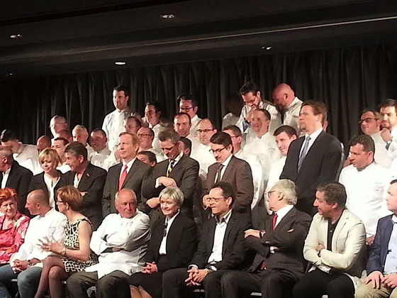 On pouvait aussi y voir le chef Régis Marcon, le chef parisien Éric fréchon, le chef alsacien Marc Haeberlin… Le grand absent remarqué sur la scène, le chef Yannick Alléno pourtant trois étoiles de l’année 2015.
