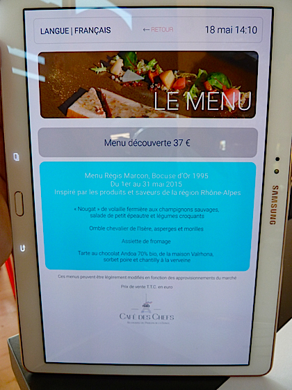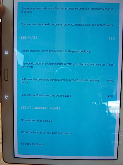 La carte est présentée aux clients sur tablette, ainsi on peut choisir la langue.