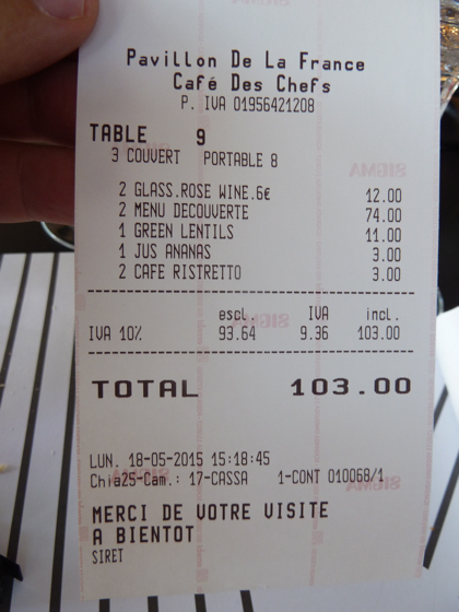 Pour l avoir vécu, pavillon France est certes très intéressant. En revanche la restauration est assez décevante les équipes méritent d’être réellement formées et l’addition reste à mon goût salée pour la qualité des plats servis. C’est à cela que l’on remarque que le nom du chef est seulement écrit et non présent en cuisine .