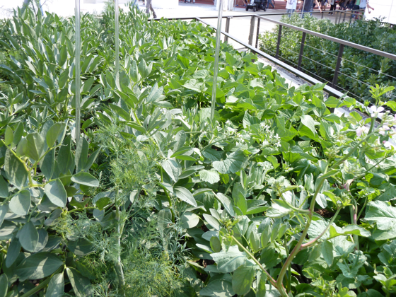 Avant de pénétrer dans le pavillon, la file d’attente se déroule dans le « jardin agricole ». Soixante espèces végétales qui résument la diversité française. « Nous avons le double des plantes exposées dans des serres pour pouvoir les remplacer au pied levé », explique un des jardiniers….