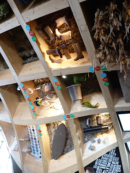 Un peu plus loin dans le pavillon, des coupoles sensitives vous permettent d’approcher l’univers du vin, de la cuisine, … au travers de bruits où de parfums …