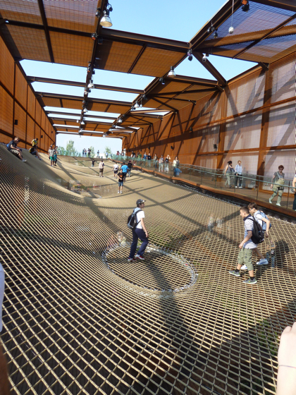 C’est l’une des structures les plus impressionnantes de l’événement, le filet massif accroché dans l’espace est devenu rapidement l’attraction vedette sur le site de l’expo.