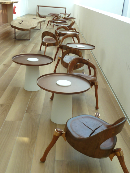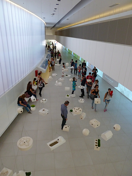 Dans la grande salle au rez-de-chaussée des satellites en suspension vous permettent d’appréhender les parfums naturels du Brésil, plantes, cafés, fruits….