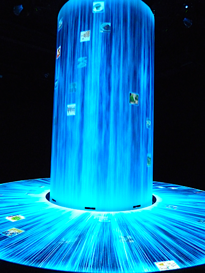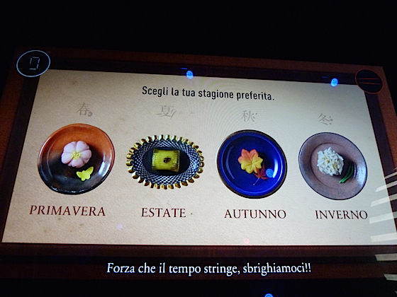 Vous passerez ensuite dans une pièce où se trouve un immense tube où se baladent des images, elles glissent sur une table, si vous arrivez à les capter du bout des doigts, elles laissent apparaitre des plats ou des produits japonais.
