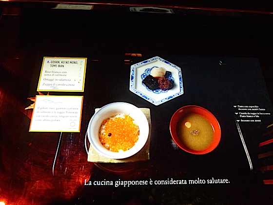 La salle suivante est une immense pièce aménagée comme une cuisine, y sont présentés ses fameux plats japonais que l’ont retrouve dans les vitrines des restaurants un peu partout dans le pays, se sont des faux plats, qui ressemble à l’identique aux vrai … c’est un art au Japon !