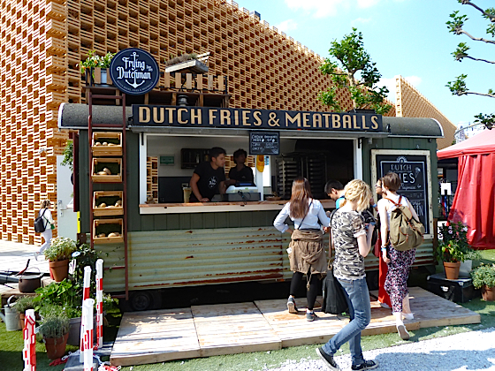 Ils pouvaient être très innovant et moderne comme le food truck Peugeot sur le Pavillon France, mais aussi totalement vintage comme sur le pavillon Hollandais …
